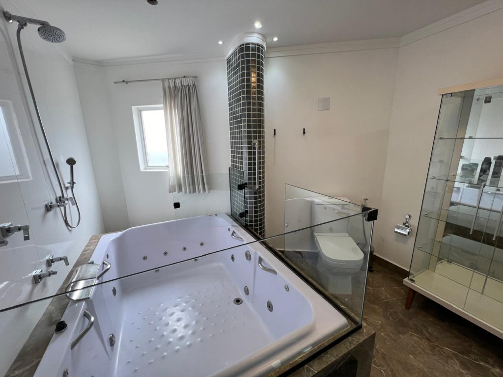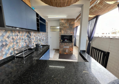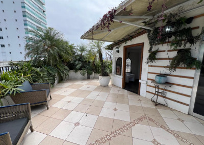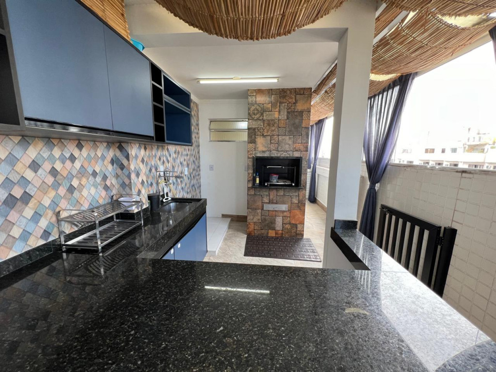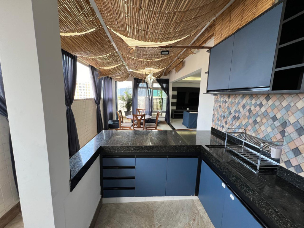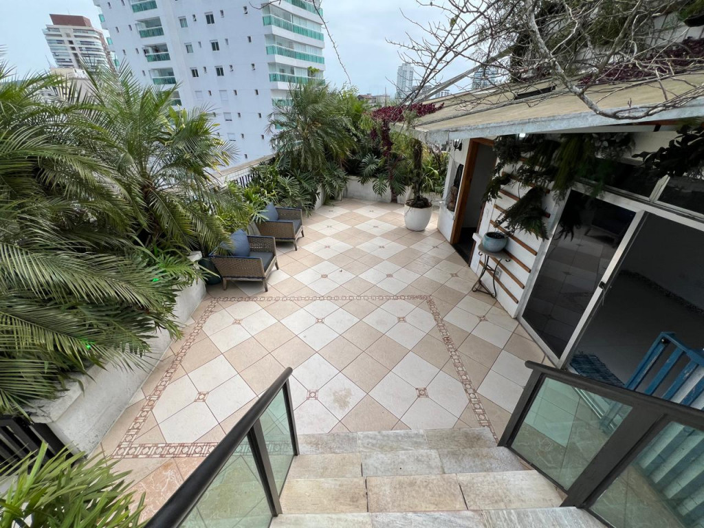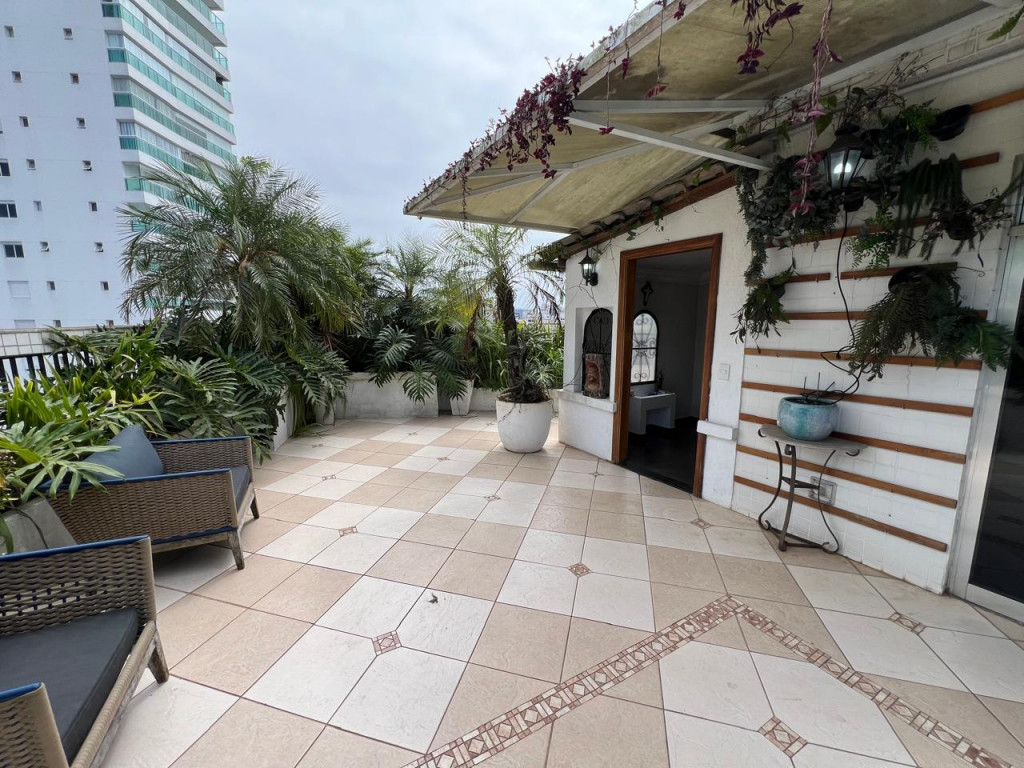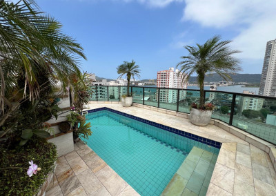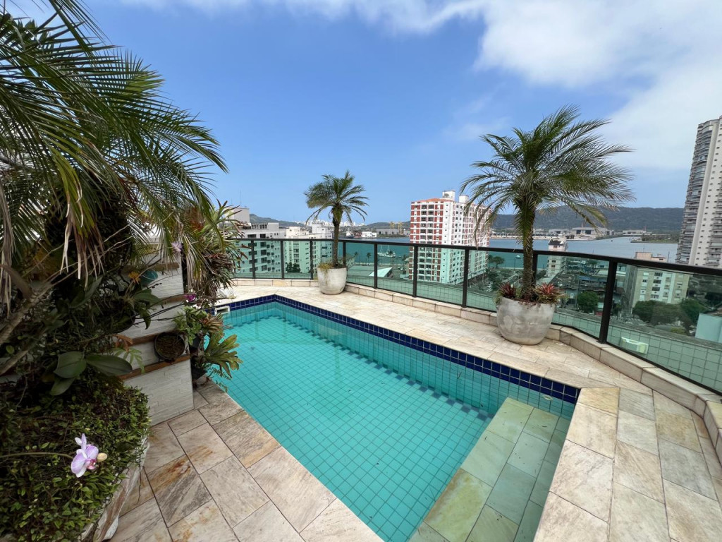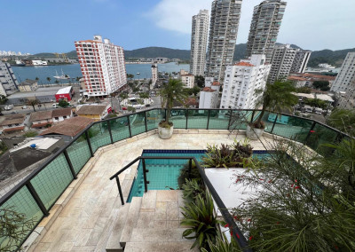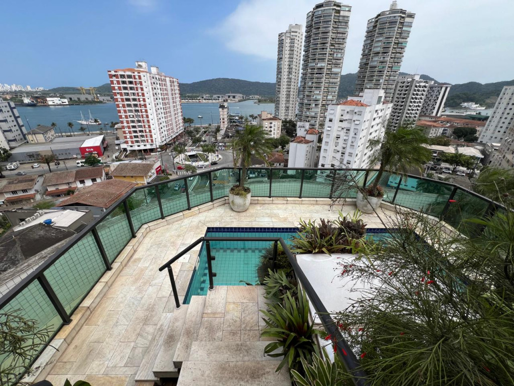Cobertura a venda na ponta da praia em Santos com 600 metros , 5 quartos , 2 suites com banheiro de hidramassagem , closet , duplex com elevador interno , churrasqueira , piscina , capela , sauna , 3 vagas demarcadas e fechada .