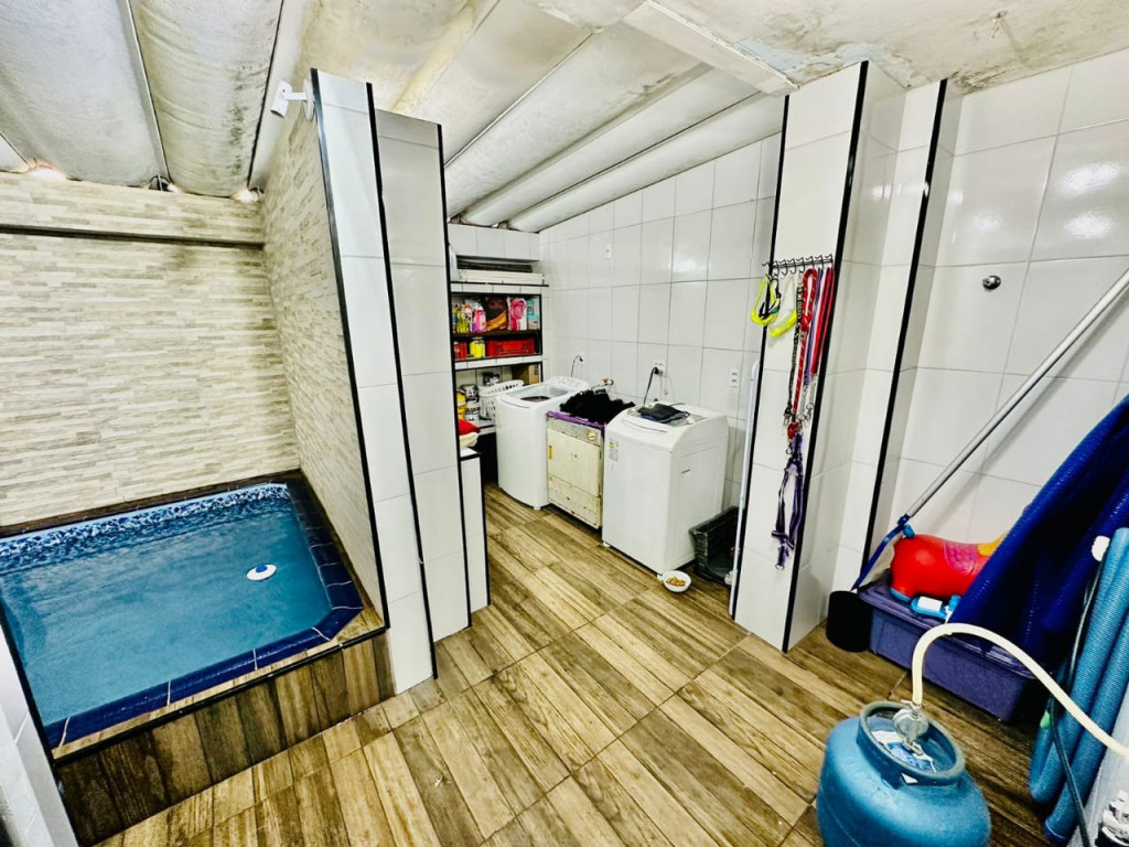 - 3 wc ao todo (1 na área da piscina, suíte e o social com banheira de hidromassagem);