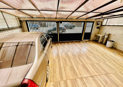 - garagem coberta para 2 carros grandes paralelos (já couberam 3 pequenos);