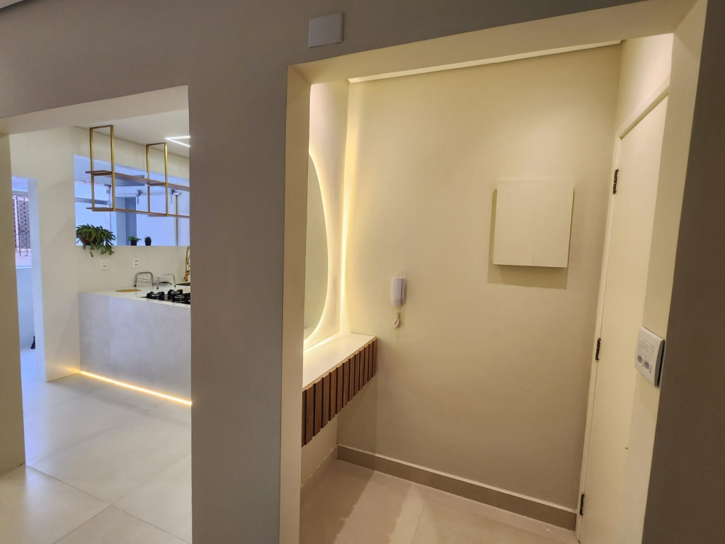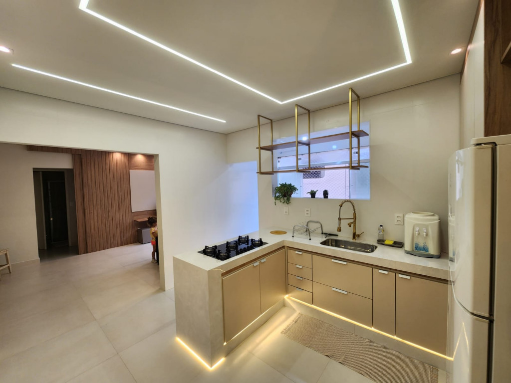 Apartamento a venda no Bairro da Ponta da Praia em Santos , ao lado de todos os comércios em geral , Prédio de 3 andares , fica no 1 andar de fundos , com Sala dois ambientes , cozinha conceito aberto rica em planejados , todo reformado , com dois quartos , suíte , banheiro social , vaga fechada individual .